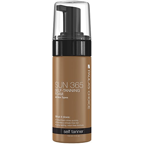 SUN 365 Self-Tanning Foam is a long-lasting, self-tanning foam that can help you achieve gorgeous, golden bronze skin without subjecting your skin to the damaging effects of unprotected sun exposure (keep in mind: this is not a sunscreen and doesn't protect your skin from the sun). The ultra-quick-drying foam is lightly tinted to ensure you can see exactly where you've applied it for a streak-free application. In just 1 hour your skin will start developing a natural-looking tan that perfectly complements your own skin color. It is specially formulated to minimize or eliminate that telltale self-tanner odor. All Paula's Choice products are 100% fragrance free, clinically proven to be non-irritating, and never tested on animals.Feature