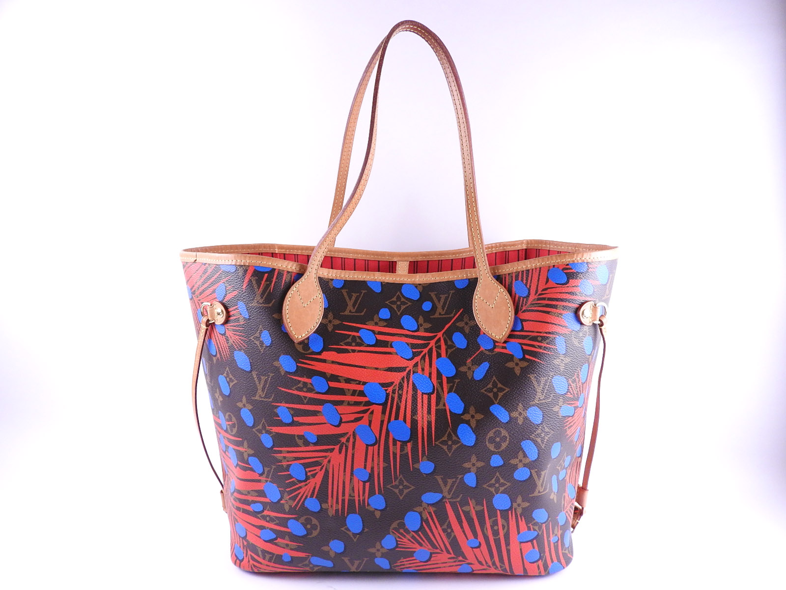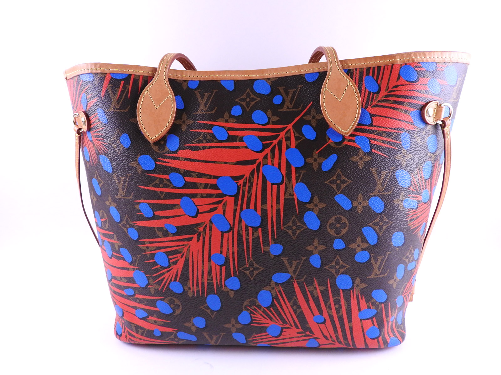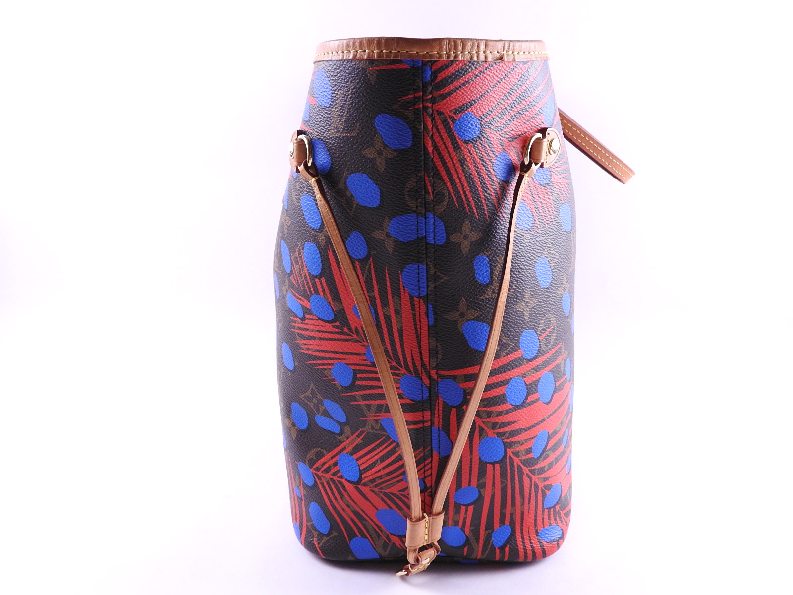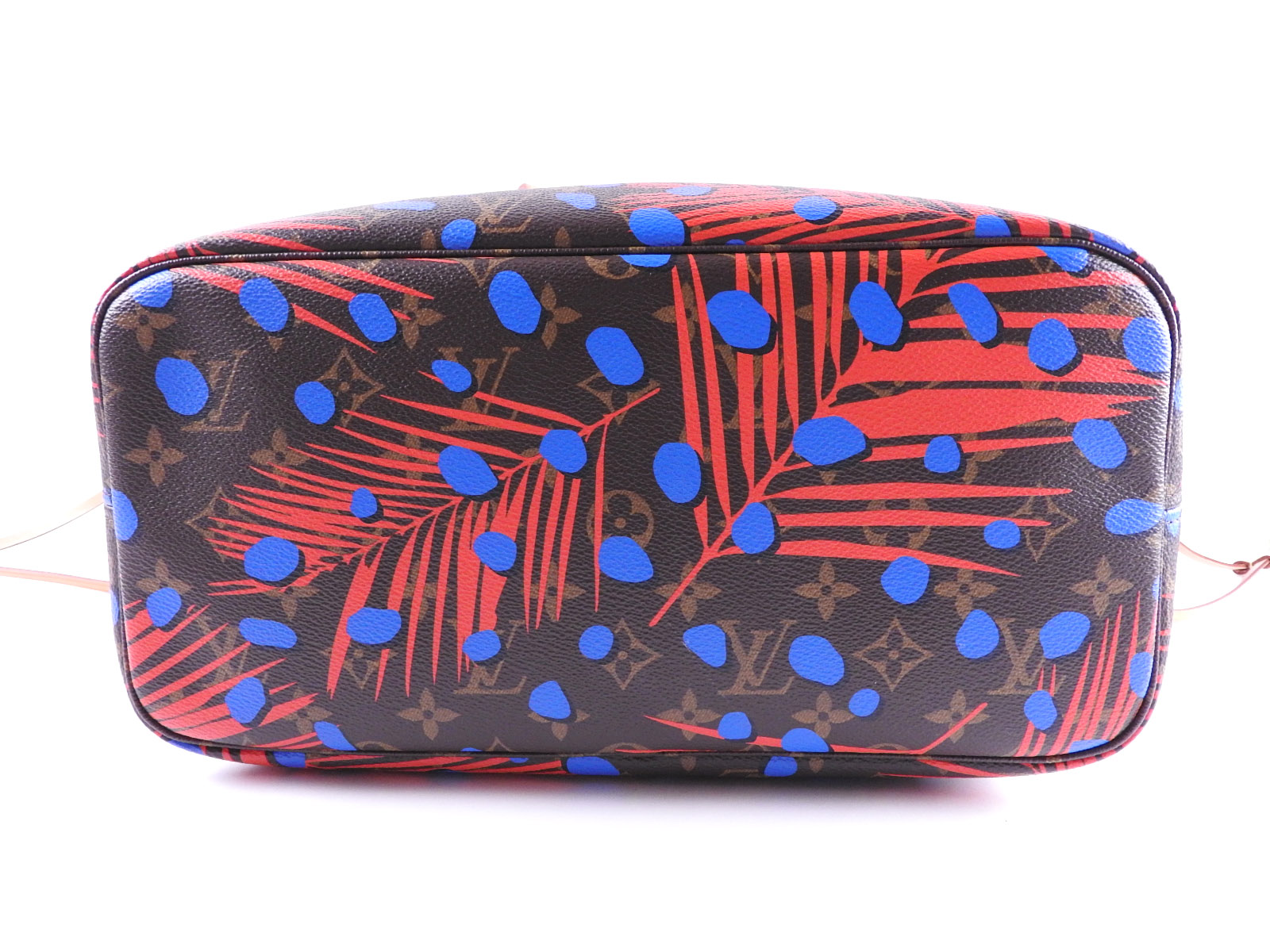 Auth LOUIS VUITTON Summer Jungle Dots Neverfull MM Shoulder Tote Bag With Pouch Monogram Blue M41978 A-7489
