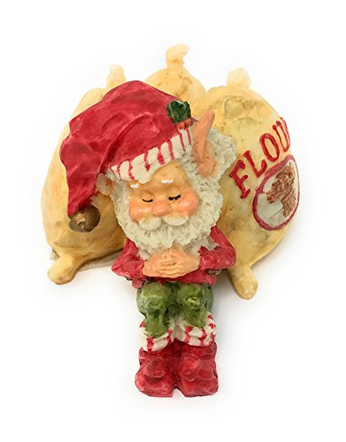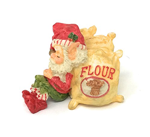 Enesco North Pole Village Snoozer Elf napping by Flour Sacks