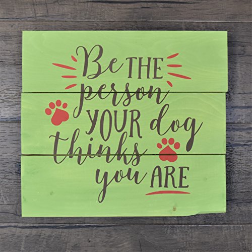 - INCLUDES: 11.5"x10.5" prepared wood, paint, brush, sponges & vinyl stencil "Be the Person Your Dog Thinks You Are"