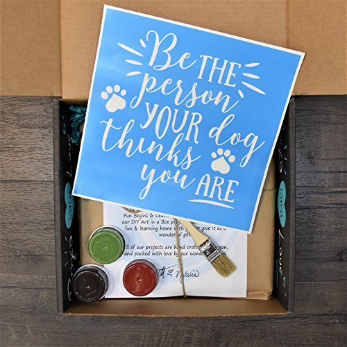 DIY Art In A Box - Wood Sign Painting Kit - "Be the Person Your Dog Thinks You Are" Stencil, Paint, Brushes and Wood Included -12"x12"