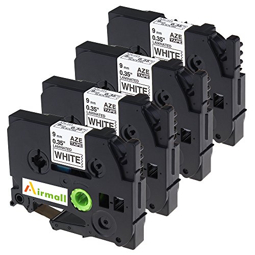 Airmall Standard Laminated Tape TZe 221 TZ 221 Compatible with Brother P-Touch PT-D210 PT-H110 PT-P700 , Black on White 0.35" 26.2 ft (9mm x 8m), Pack of 4