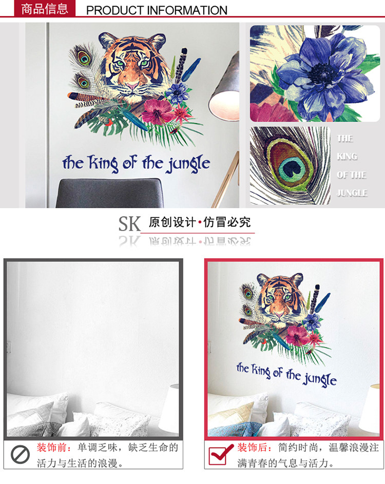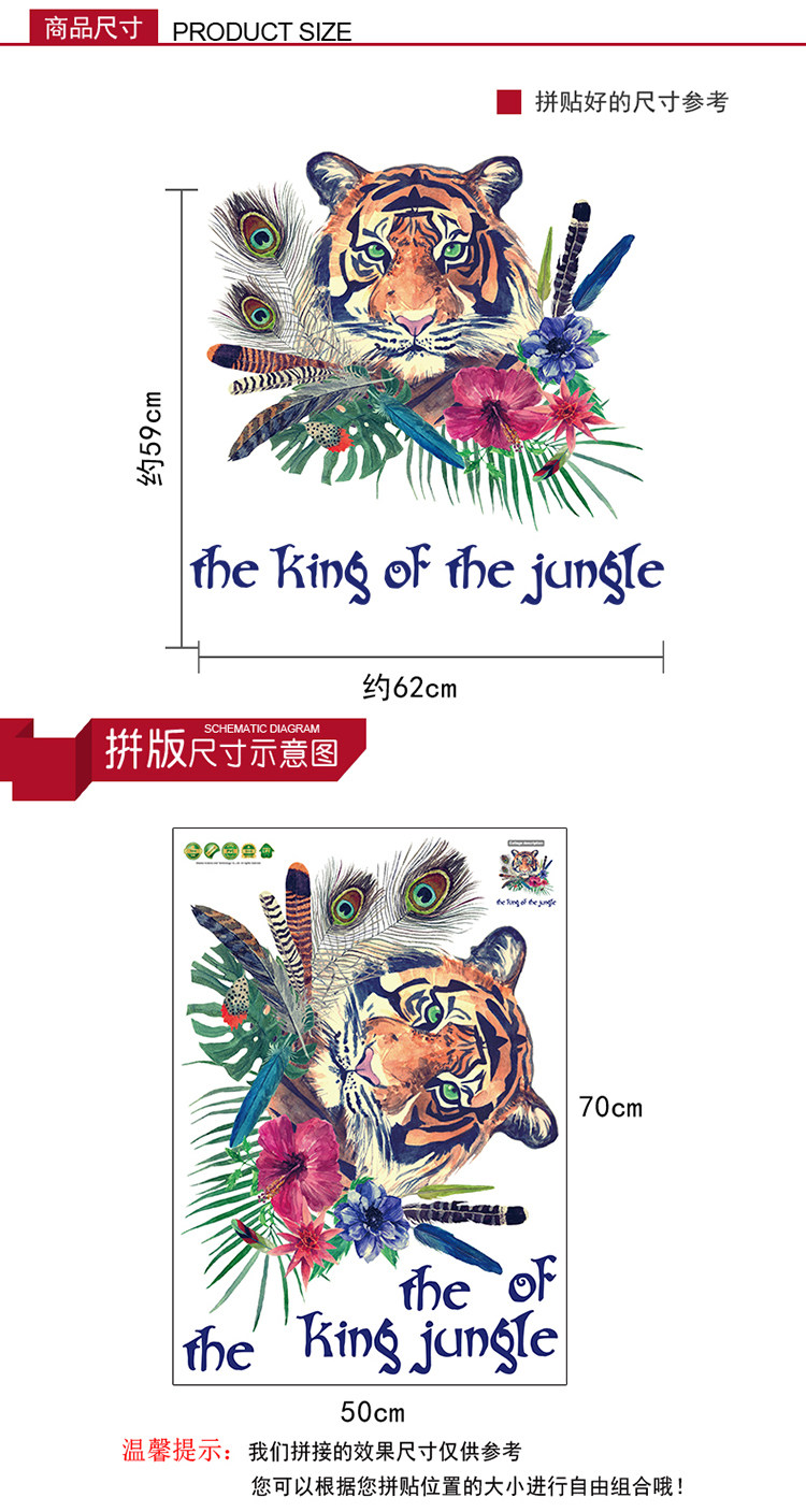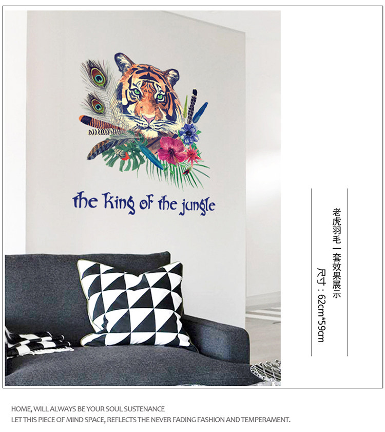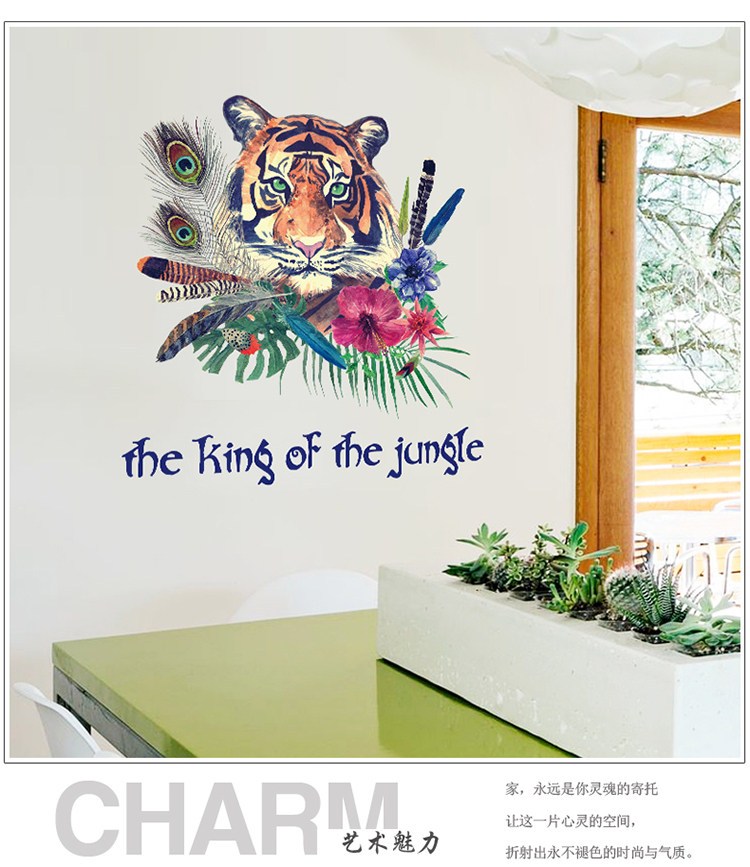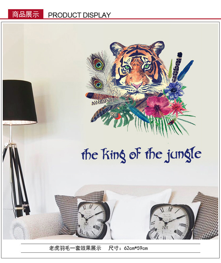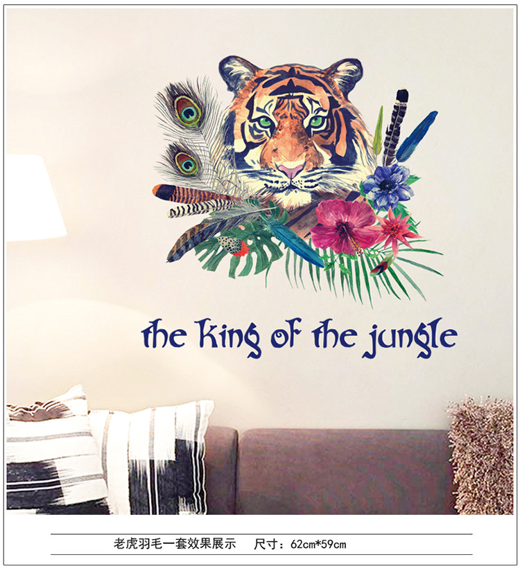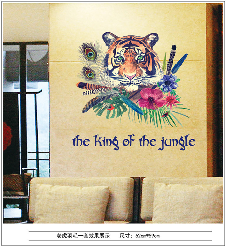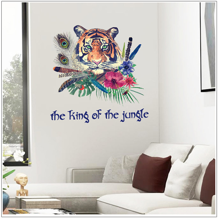 动物森林老虎客厅卧室电视沙发背景墙简约时尚中式可移除墙贴贴画