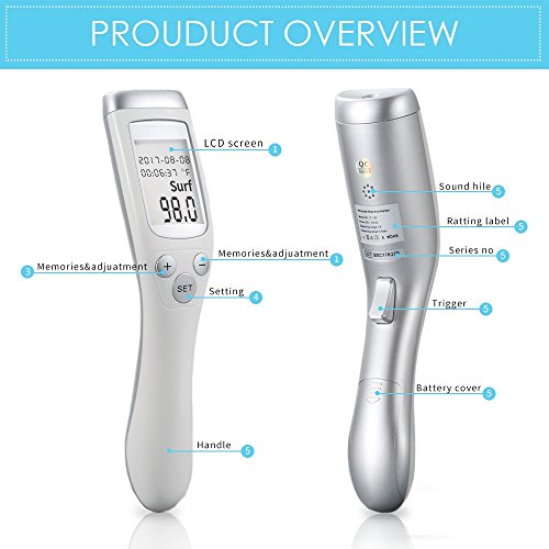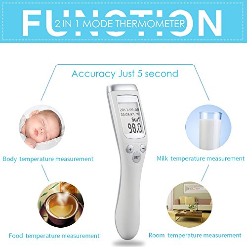Studio : Niuku Publisher : Niuku Binding : Health and Beauty Product Description NIUKU Infrared Thermometer,model:It-126 is a precise accurate and high quality product. AMAZING PRODUCT. The Niuku is a non-contact infrared thermometer that measures the temperature of human body by using the principle of receiving infrared while using,it is only required to align the detection point to the forehead to measure the body temperature quickly and accurately. PRODUCT KEY FEATURES: Precise high quality German infrared Sensors for environment temperature adaptability. Patent probe design to ensure precise measurement One key operation for measuring Body and Object temperature's. Automatic power-saving function. Large size LCD screen,high brightness with tricolor backlight【White for normal temperature,yellow for alert temperature, red for high temperature】 High Temperature alarm. Fast measure in 0.5 sec DateTime with environment temperature on display when the unit is idle INDICTIOAN: 1:White light for normal 2:Yellow light for low fever 37.5℃-37.9℃(99.5-100。2℉) 3:Red light 1,for High fever more than 38℃(100.4℉) 4:Red light 2,for low temperature less than 32℃(89.6℉) 0