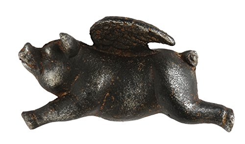 Creative Co-Op DA6955 black Cast Iron Flying Pig Shaped Hook
