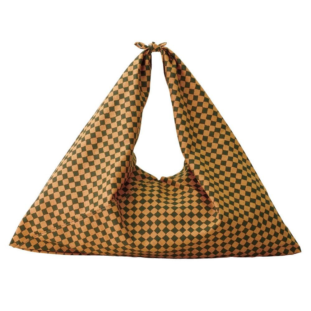 容量に合わせて上の三角を結ぶだけで、自然に持ちやすい形になってくれます♪使い終われば小さく畳めるのでエコバッグのように使うこともできます。