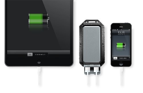 - Feature : Rugged Series 5V@2A-1A Dual USB Charger charges 2 devices simultaneously. 2A output is for iPad/Tablet and 1A output is for iPhone/smartphones. / Compatible with most smartphone's (Apple, Samsung, HTC, Motorola, LG, Nokia, Blackberry, Sony, etc...) and 5V Tablets compatible devices. / Rigid and durable build makes the PowerPak Xtreme water proof, dirt proff, and shock proof. The ideal companion for those who enjoy camping, hiking, biking, and many other outdoor activities. / No iPhone/iPad adapter or cable is included, but the PowerPak Xtreme NT120R is compatible with the original Lightning/30-pin connector Apple manufactured charge cables. / No AC wall charger is provided, but the PowerPak Xtreme NT120R can be recharged using the supplied micro-USB charge cable with any standard 5V/2A USB charge ports, including most computer USB ports and USB wall chargers.