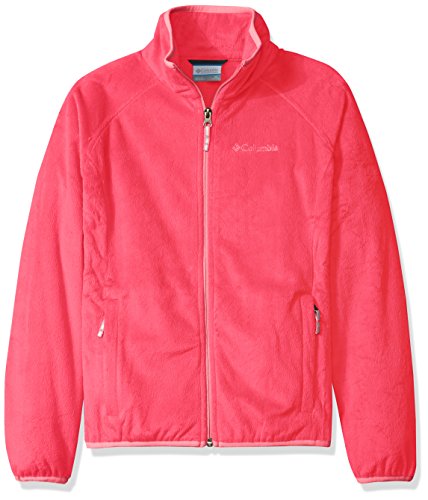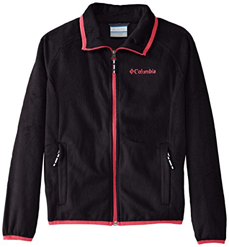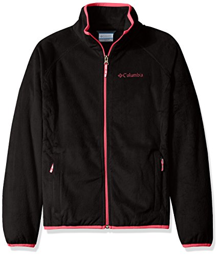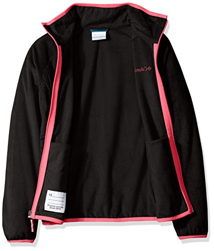 Columbia Big Girls' Pearl Plush Full Zip Jacket, Black/Punch Pink, Large (14/16)