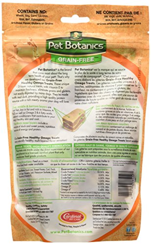 -. Binding : Misc. -. Brand : Pet Botanics -. Feature : Rich in Omega 3 and 6 fatty acids / Pet Botanics Healthy Omega Dog Treats provide dogs with all the nutrients they need for beautiful skins and coats / Made with premium natural ingredients, including real meat and fish -. Label : Cardinal Laboratories -. Manufacturer : Cardinal Laboratories -. MPN : 78612 -. PackageQuantity : 1 -. PartNumber : 78612 -. ProductGroup : Pet Products -. ProductTypeName : PET_SUPPLIES -. Publisher : Cardinal Laboratories -. Studio : Cardinal Laboratories -. Title : Pet Botanics Health Omega Treats Grain Free