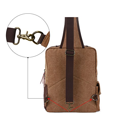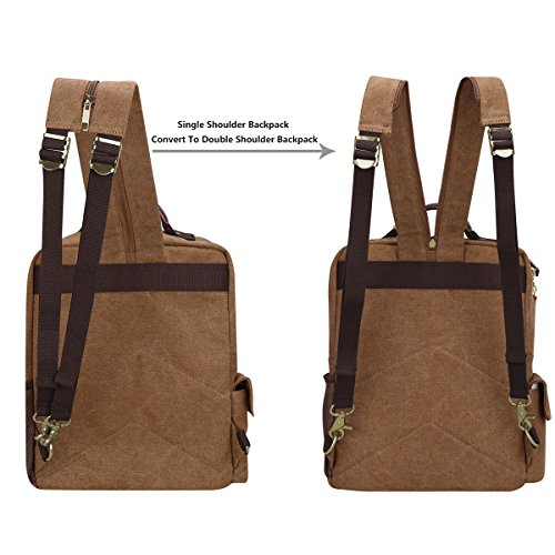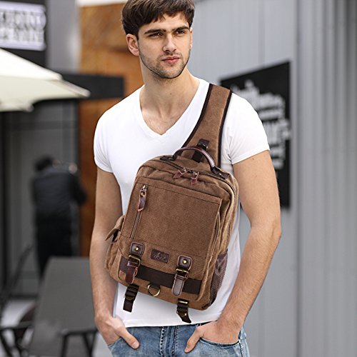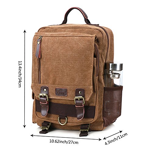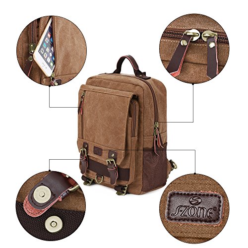 -. Feature : Versions for Choice: There are 2 version for this kind of MEDIUM sling bag, Single Shoulder Strap (could be used as a single-shoulder bag or a cross-body bag); Zipper Shoulder Strap (could be used as a single-shoulder bag or a cross-body bag, even a BACKPACK). You can choose the one you need / DURABLE & HIGH CAPACITY: The bag is about 27*34*11cm/10.62*13.4*4.3inch (L*H*W). The shoulder bag can fit a laptop up to 13 inch. This canvas backpack is not a large backpack, but it is a great size to take to a day trip or shopping. Length of adjustable shoulder strap is 80-120cm/31.5-47.2inch. S-ZONE messenger sling bag is made of durable canvas material and nice quality PU leather trim on the outside / MULTI-COMPARTMENT: The canvas backpack is vintage and multifunctional with lots of pockets. 1 zipper pocket in the front flap; 1 zipper pocket and 1 open pocket under the flap; 2 side pockets. The main compartment is fitted with two zip heads and pulls: 1 inner zipper pocket; 1 inner laptop compartment; 2 inner small pockets. A small laptop, iPhone, wallet, snacks, tickets and magazine will all fit comfortably with room left over for add-ons / CONVENIENT: The buckles on the top flap is magnetic snap, easily open and close the bag and keep everything very secure. The zipper pocket on the top flap can put tickets and passport for easy access. The straps is adjustable and ultra-comfortable across your back and chest / USEFUL: It is a great daypack for traveling, school, dating, shopping and outdoor activities in daily life. It is a great gift for your friend, husband, father, son and so on.