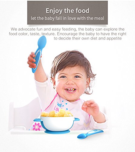 Curved Design Bowl to makes Baby easy to eat soup porridge. V shape soft Spoon and leak-proof to suitable for baby mouth and easy to enter the baby's mouth. The best bionic curve of spoon to exercise the baby to grasp the ability.