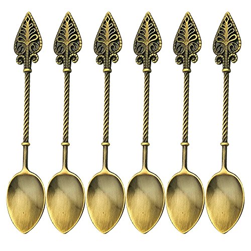 Retro Creative 6-pieces Tablespoon Coffee Scoops Stirring Spoon Sugar Spoon Tea Spoon Ice Cream Scoops Seasoning Spoon (Antique Brass)