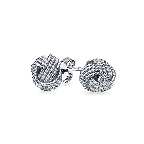 These glam twisted knot earrings are made of solid .925 sterling silver. Their chic twisted wire love knot design symbolizes the ties that bind you to your significant other. These sterling silver stud earrings will look great with other sterling silver jewelry or simply on their own for a more minimalist, classy look. For pierced ears only.