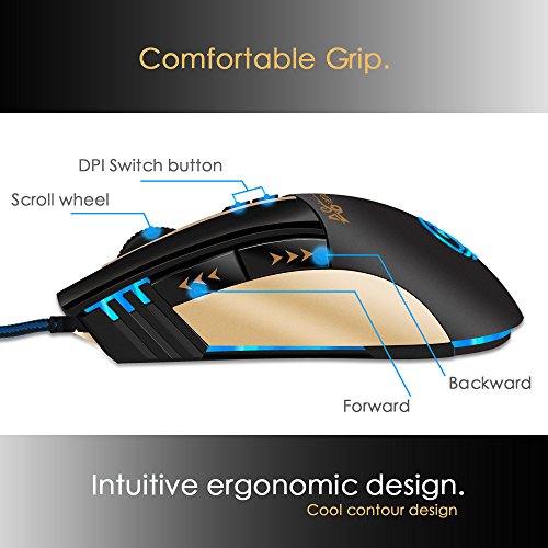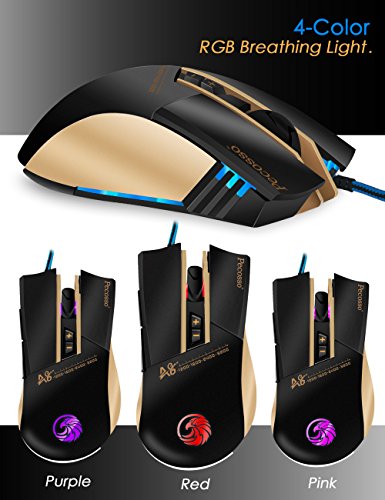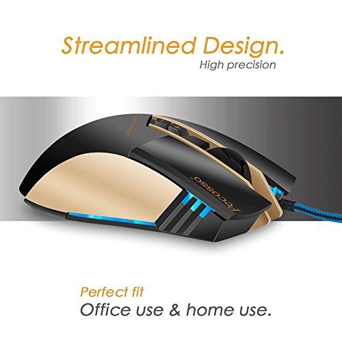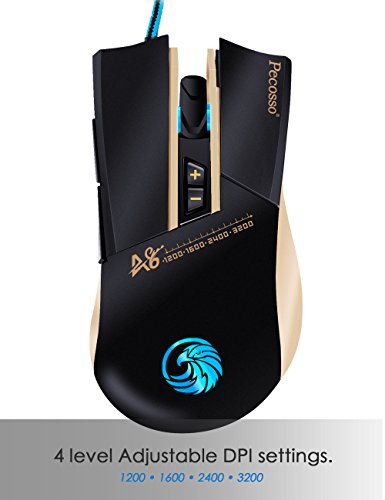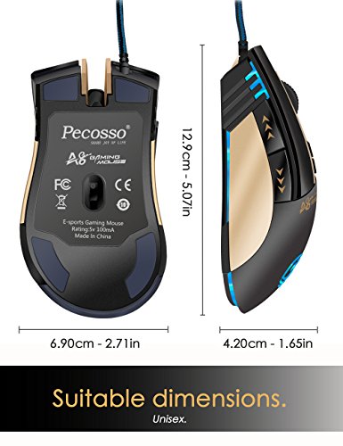 【The Pecosso Gaming Mice Advantage】: Steady yet stylish design, high precision and comfortable grip; use this mouse for gaming or graphic design, it's great for both! Gold and black color with, perfect for FPS and other Game Players, whether it is home or office use, are appropriate and the fashion trend.