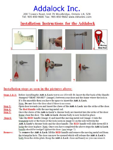 - Feature : The Addaock is a door lock, a portable door lock,installs in seconds, no tools required / The Addalock gives you additional security and privacy / Use on any door that has hinges and opens inwards. / Great for home, travel, apartment living, hotel, motel and students away at college. / Great for privacy