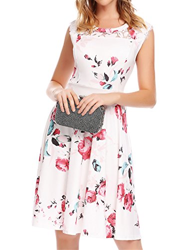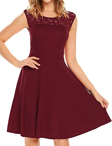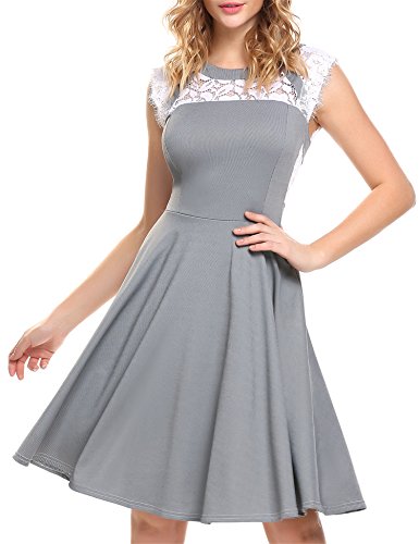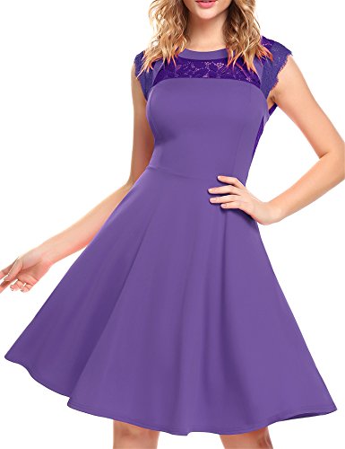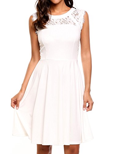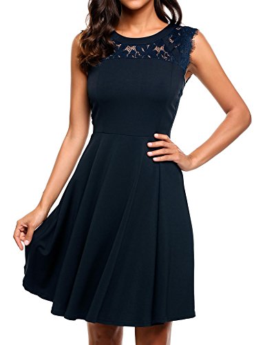 Featuring Lace patchwork round neckline, sleeveless, A-line shaped party evening dress