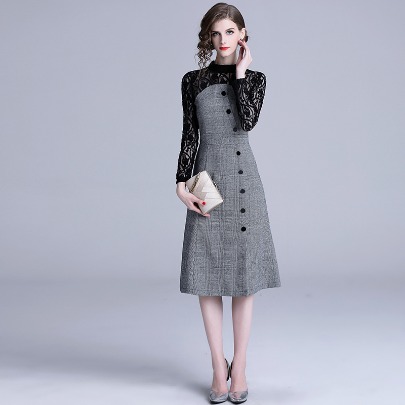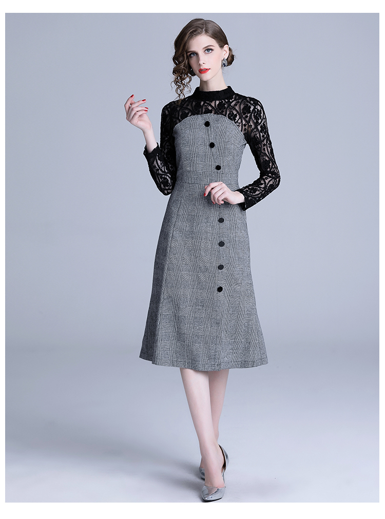 袖が総レースでハイウエストがメリハリシルエットを作り出し、