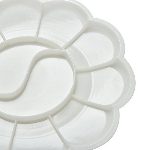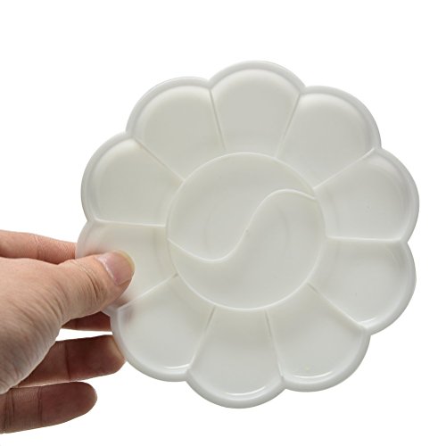 -. Feature : Size:14.3cm * 14.3cm/5.63" * 5.63" / Material:Plastic / Package include: 1 Pcs Painting Palette / Note: *Manual measurement,please allow 1-2CM error. *The real color of the item may be slightly different from the pictures shown on website caused by many factors such as brightness of your monitor and light brightness