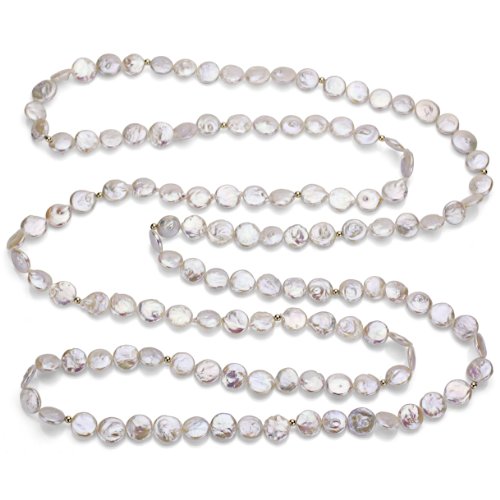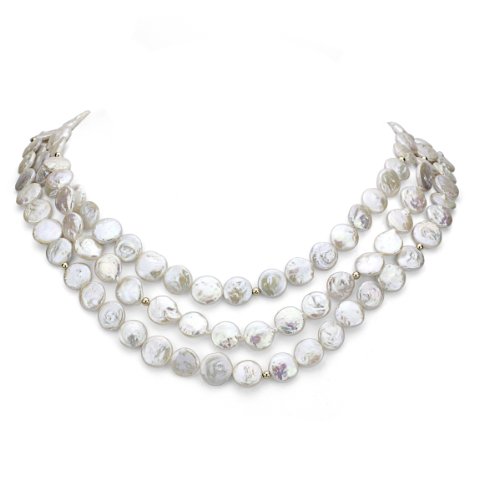 A Fashion 9-9.5mm White Coin Shape Freshwater Cultured Pearl Endless Necklace 60" Length with 3mm 14k Yellow Gold Beads. Please Contact Us if You Do Not See What You Need.