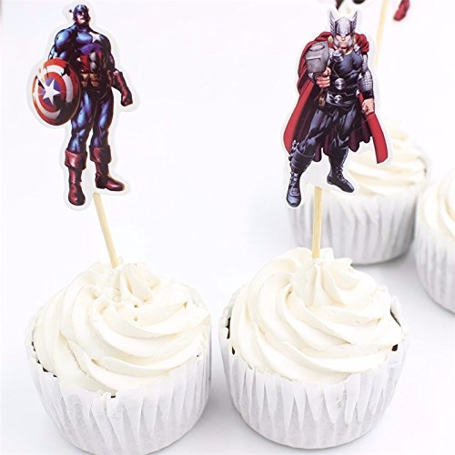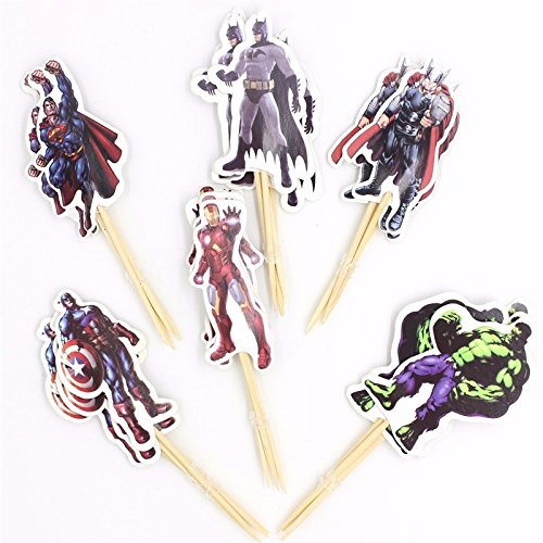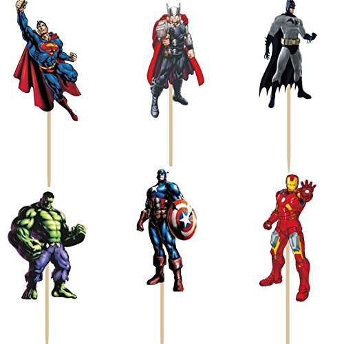 Pack of 24 The Avengers and Superheros Cupcake Topper Picks Boy Children Party Decoration Kid's Birthday Party Decoration Supplies