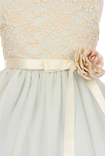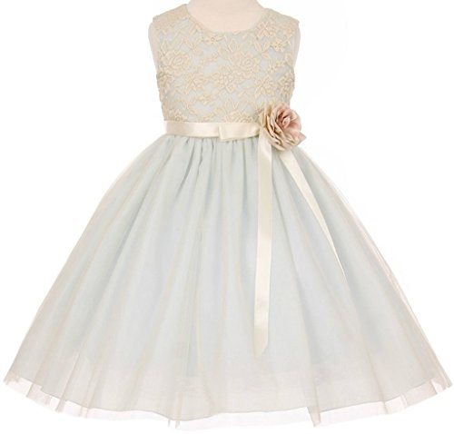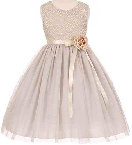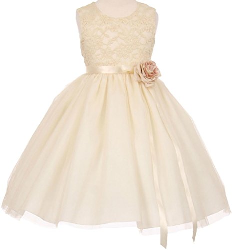 Beautiful elegant 3D stretch lace tulle dress with satin sash, corsage and back zipper closure. Perfect for flower girl dress, Easter, recital, graduation, birthday party and any other special occasions. This dress comes in different colors.Feature