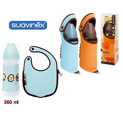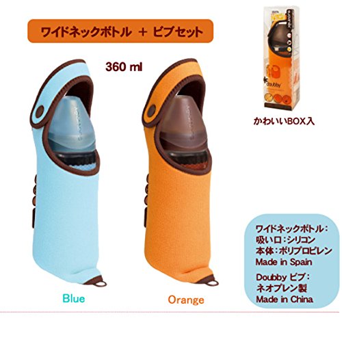 ★Doubbyビブ(スタイ)とワイドネックボトル(哺乳瓶)が一緒になったセット商品です。 ◆Motion ワイドネックボトル(哺乳瓶) ・ワイドネックボトルは、赤ちゃんの飲む早さに応じて3段階に調節できる3ポジション機能付き。 【実容量】:ボトルの容量 :ブルー:360ml(最大目盛容量) 【消毒方法】:煮沸:○/電子レンジ:○/薬液:○ 【材質】・フード、キャップ、ボトル本体:ボピプロペン ・中ぶた:ポリエステル ・乳首:合成ゴム(シリコンゴム) 【耐熱温度】:100度 耐冷温度:-5度 【乳首吸い穴形状】:ワンカット ■原産国:スペイン ◆Motion doubby ビブ ・ビブ(スタイ)はボトルケースにもなります。ウェットスーツと同じ素材でできているので、保温・保冷に優れています。 【材質】 ・外側生地:ポリエステル100% ・中生地:ネオプレン 【サイズ】:21x26cm ■原産国:中国 ・赤ちゃんの飲む早さに合わせて3段階に調節できる3ポジション機能採用の哺乳瓶とボトルケースにもなるビブのセットです。 ・ボトルの乳首の方向によって、授乳の早さをかえられます(ゆっくり、普通、はやく)。吸い穴の形状ワンカット。 ・ビブは、ウェットスーツと同じ素材でできているので、保温・保冷に優れています。Feature