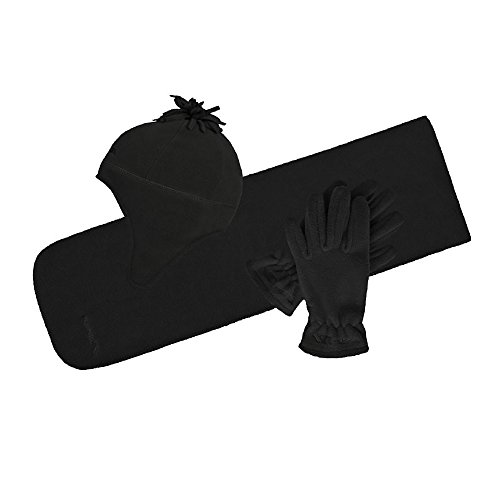 Product DescriptionUnisex kids 3 piece winter accessory set. Includes fleece hat, scarf gloves. Tonal trespass embroidery.0