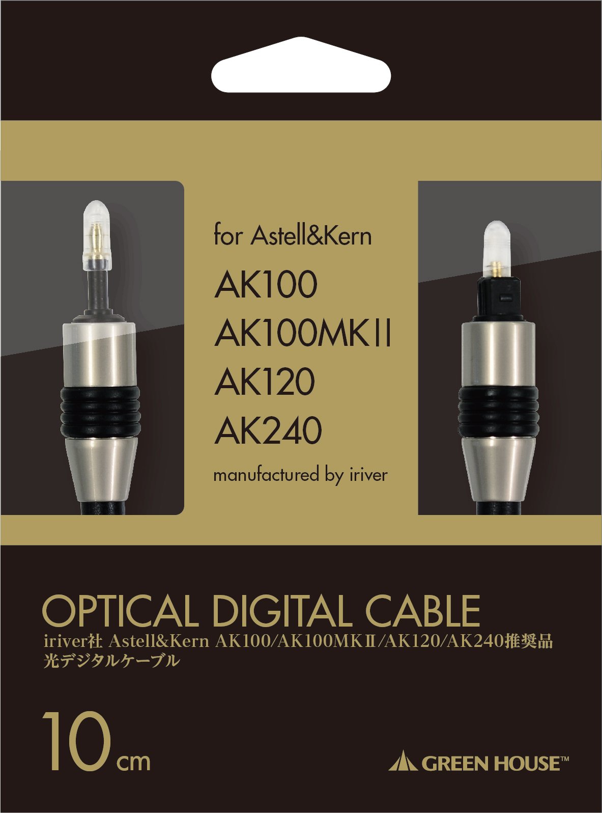 "GH - CBALA0.1 - BK" is an optical audio cable of optical angle type plug - optical circle plug recommended by iriver Astell & Kern; AK100 / AK100MKII / AK120 / AK100II / AK120II / AK240.