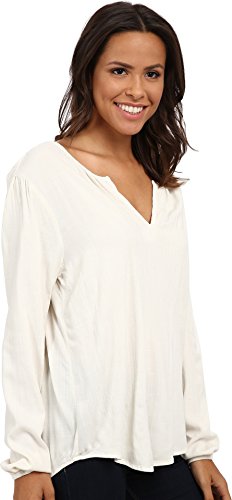 Loose, blousson fit. Henley collar with V-notch. Long blousson style sleeves with elasticized cuffs. Pintucks at collar and shoulder seams Shirttail hemline. Unlined. Pullover design. 97% viscose, 3% elastane. Machine wash cold, tumble dry low. Made in the U.S.A. and Imported.