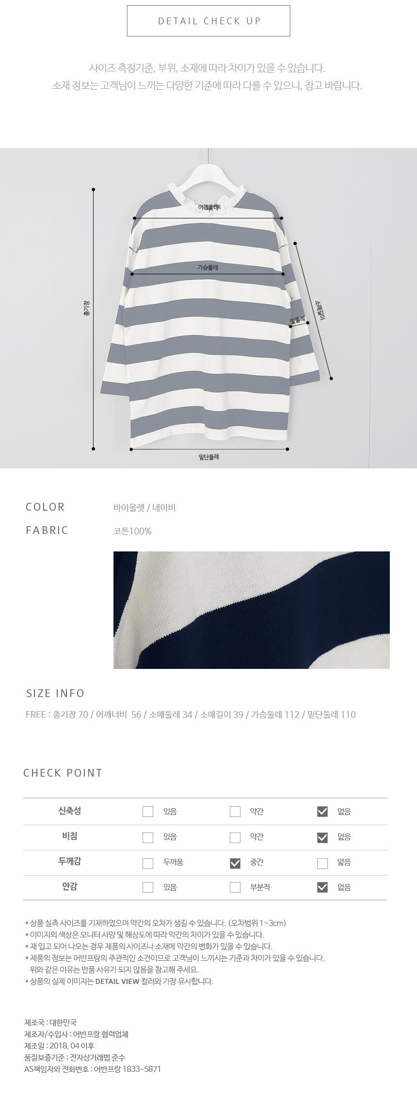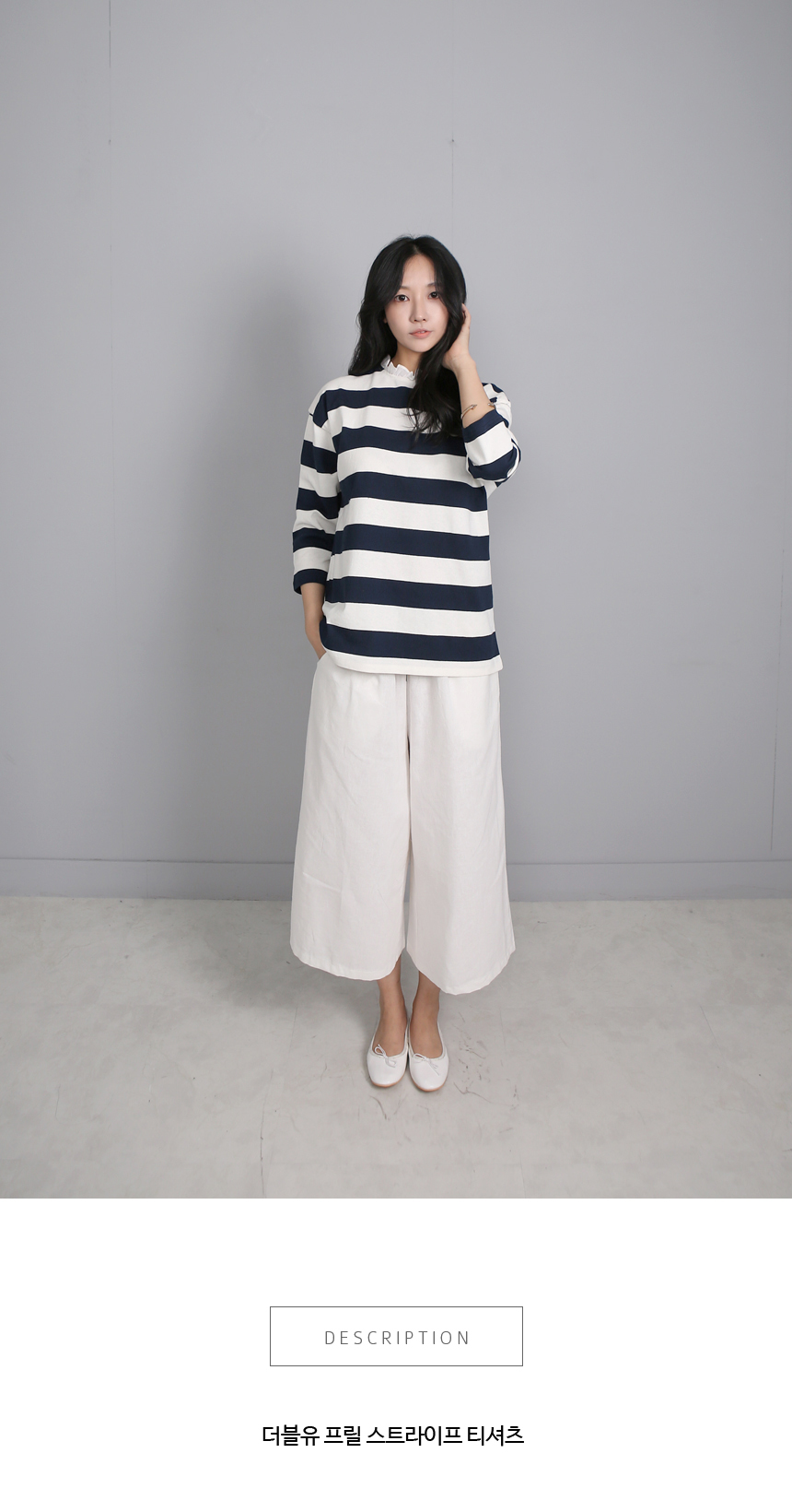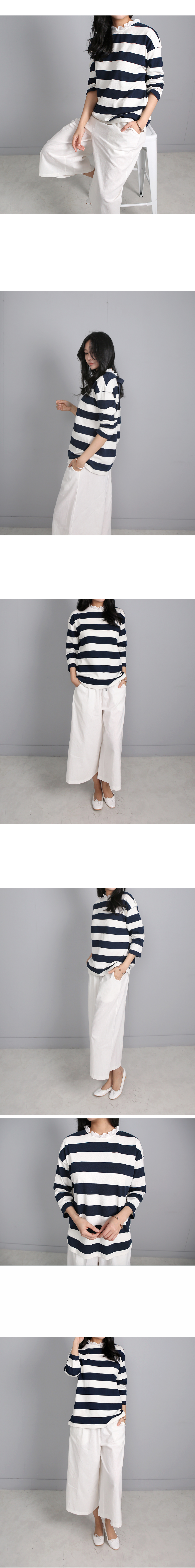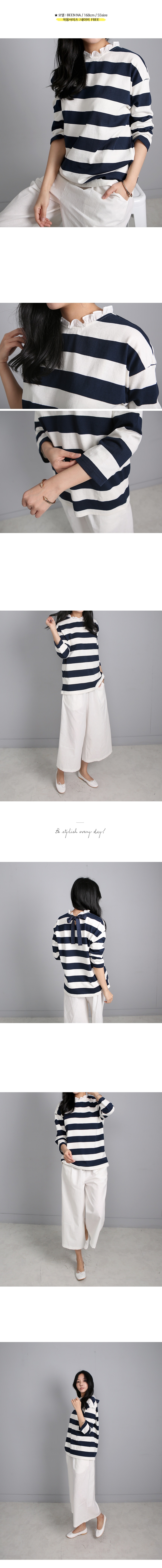 톡톡한 코튼 100%의 소재는 여름시즌에 맞게가볍게 가공되어 초여름까지 멋스럽게 입기 좋아요목선의 얇은 코튼으로 프릴이 덧대어져 있고뒷목에서 리본으로 클로징해요넉넉한 핏과 힙을 살짝 덮는 길이감으로루즈한 팬츠와 편안하게 매칭하기 좋은 아이템이랍니다프릴과 스트라이프, 리본의 조합이 특별한 티셔츠에요소재는 코튼100%색상은 바이올렛, 네이비사이즈는 FREE 44~66반▼ 관련상품 : 시크 린넨 와이드 팬츠