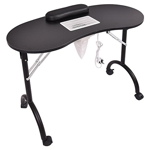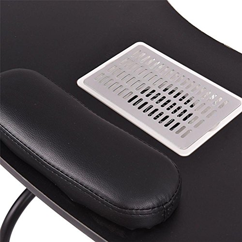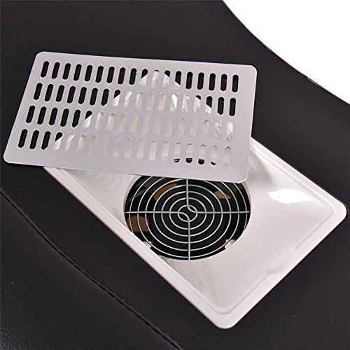 Feature: Brand new and high quality Practical and professional manicure station for nail beauticians Comfortable and thick wrist cushion Solid MDF panel with steel frame, durable and sturdy A vented surface with fan that helps to pull dust downwards Simple and east for transporting for folding features Saving space when do not use With a carry bag for storage and transporting