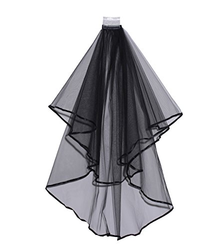 (JQLD11)/Accessories/Scarves/DIRECT FROM USA/JQLD11 Ribbon Edge Wedding Bridal Veil Black Tulle 2T Brides Veils with Comb