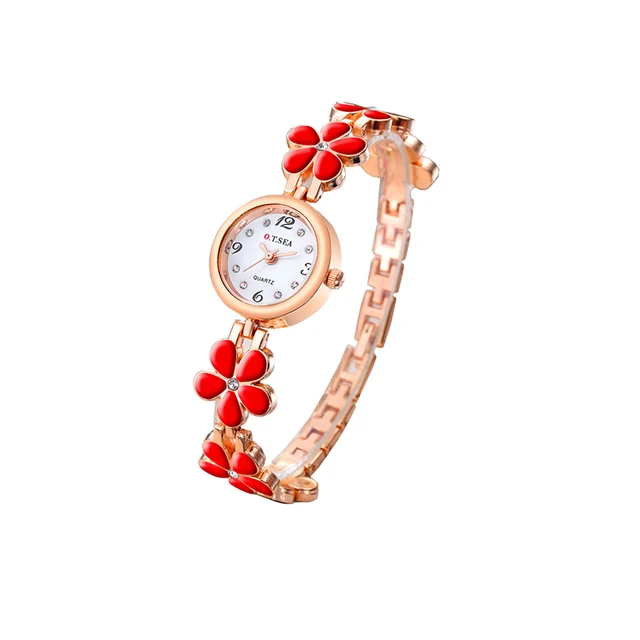 | [해외] O. T. 바다 2017 로즈 골드 잎 팔찌 시계 여성 시계 크리스탈 드레스 손 손목 시계 여성 시계 석영 시계 여성 시계 |