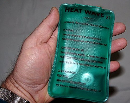 Studio : Heat Wave Heat Packs from Bent Grass Concepts Publisher : Heat Wave Heat Packs from Bent Grass Concepts Binding : Health and Beauty Product Description This 4 pack of new 3 x 6 inch Heat Wave XT heat packs are extra large and extra long lasting, lasting 40% longer; packed with extra heating power, weighing 40% more than our 3 x 5 hand warmer, in a size 20% larger. All Heat Wave instant heat packs provide therapeutic pain relieving heat in seconds and are reusable for a lifetime. Heat Wave products are portable, so they can be used at home or office, while driving or commuting, or while attending or playing sports. Our hand warmers, whether Original 3 x 5 or New 3 x6 Heat Wave XT, fit comfortably in your hands or pockets. Our other products include medium and large rectangular packs to be used for large joint and back pain; muscle soreness and menstrual cramps. The universal neck / shoulder / back packs with conforming slits can be used for all large muscle group pain and soreness, stress relief, back pain, neck pain, and shoulder soreness. Pro Heat on demand. We tested Heat Wave Instant Reusable Heat packs and stopped counting at 500! You never need to buy another heat pack. If you have been using disposable hand warmers or wraps, you only get one use. They get tossed in a landfill, with iron metal shavings making their way into the ground water. But with Heat Wave, one purchase and you are good to go! Heat Wave instant Reusable heat packs generate plenty of heat through a physical process. Simply flex the metal disc activator inside the pack, and start the heating process. We protect the metal disc with plastic for safety, our material is thicker than competitors, and we contain more fluid per size of any other heat pack, making it longer lasting. Heat Wave Instant Heat Wraps reach a soothing 130 degrees. Note that if you are purchasing Heat Wave products or other instant reusable heat packs from other companies, you might be receiving a counterfeit or inferior brand. Heat Wave is a registered trademark of Bent Grass Concepts. Boil for 20 minutes with a rag in the pot, then simmer for 10 to reuse. 0