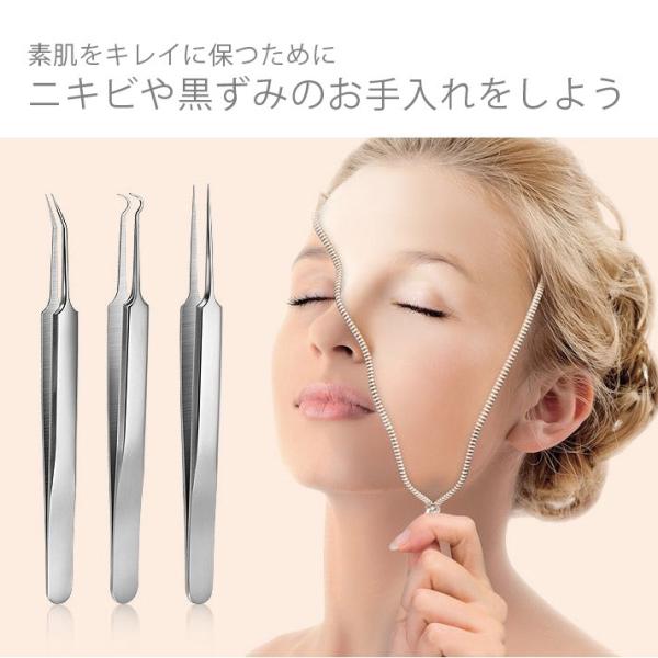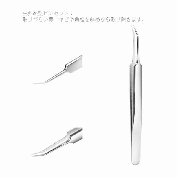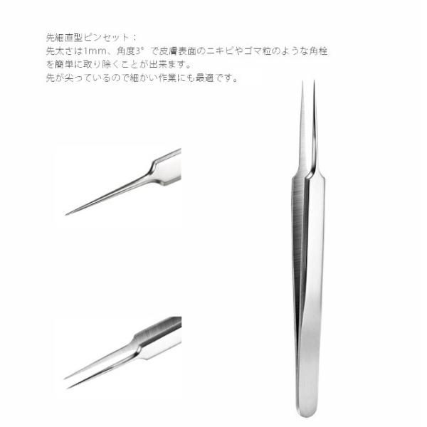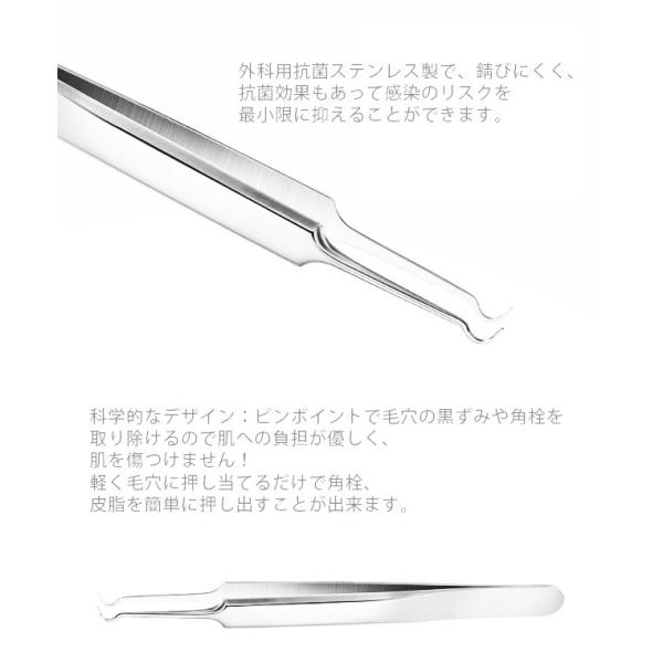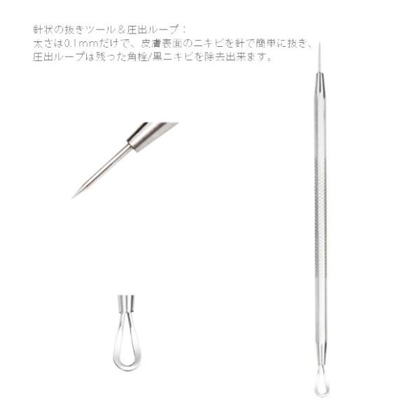 【サイズ】ループ・ピンセット/(約)12cm収納ケース/(約)14.5×7cm×2.5cm【重量】(約)100g【材質】ステンレス【カラー】シルバー【スキンケア専用】高級感があり、顔、鼻周りなどの角栓、黒ニキビ、白ニキビの除去に使用する専用スティックセットです。ニキビや黒ずみだけでなく、毛抜きとしても使用できます。【セット内容】針状の抜きツール+圧出ループ、多機能の三角形ループ+圧出ループ、精密先細曲り型ピンセット、精密先細斜め型ピンセット、精密先細直型ピンセット、6種類のニキビ潰しセットです。【収納ケース】携帯に便利だし衛生管理もしやすいです。