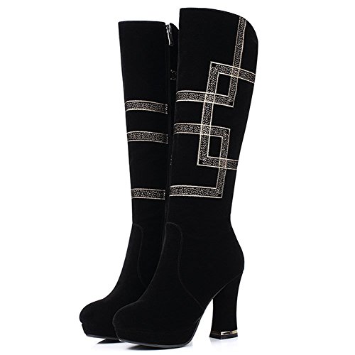 (DecoStain)/Women's/Boots/DIRECT FROM USA/DecoStain Women's Block Heel High Heel Boots