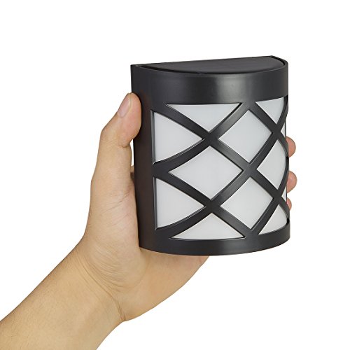 [Warm Light] Solar Light for Wall, porch, garden, fence, path; Sun powered outdoor Patio Deck Yard lamp, dusk to dawn sensor, 2 Pack