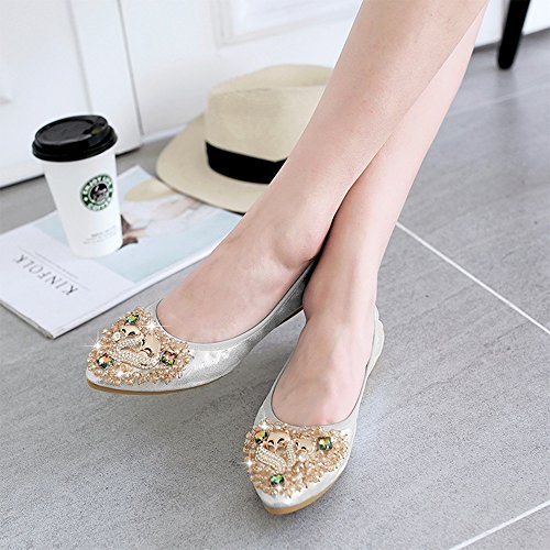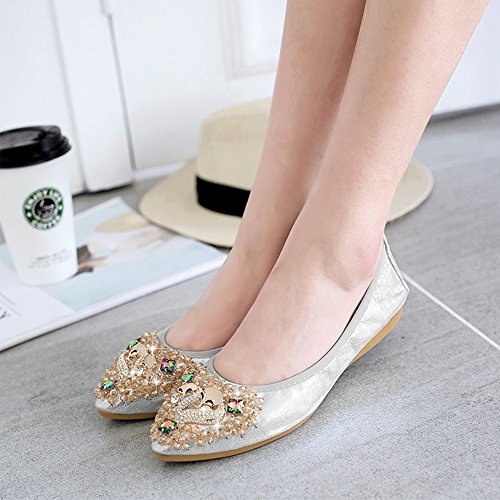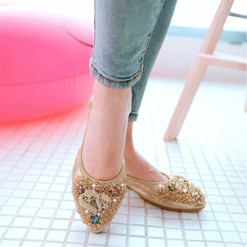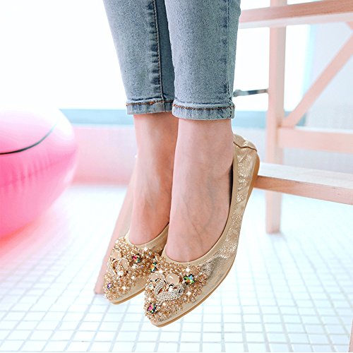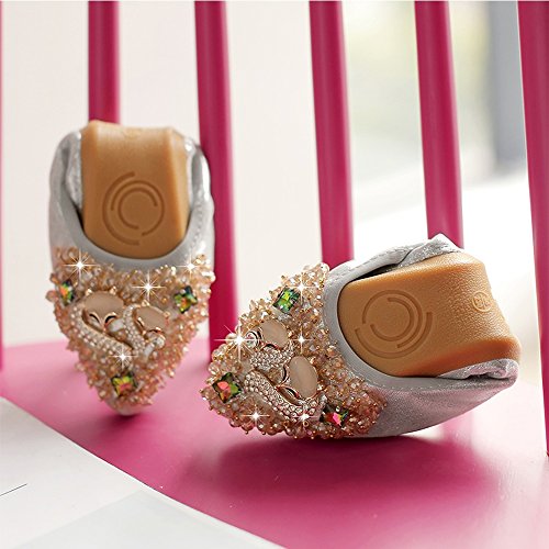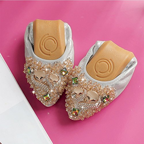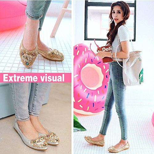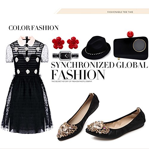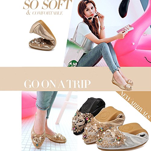 Binding : Apparel Product Description Item Type:Ballet Flats Width:Medium (B,M) Outer Material: Comfortable breathable fiber Sole Material :Slip resistant TPR Sole Heel Type:flat heel Shoe Width:Regular Feature 1:High-end Rhinestone decoration makes your feet slim and sexy. Feature 2: The fashion sparkly design makes your ballet flat seem to be no longer drab and let these flats be a very good gift for your family and dear friends. Feature 3:The shoes are perfect for your handbag or glovebox. Shoes fold into a small size, light weight and Flexible. Feature 4:You can wear them all weather, especially better in spring, autumn and winter. Tips :Match with any summer wearing,perfect fit maxi dress, wedding, evening party, festival and so on. Also Great for on you way home , traveling to work , instead of ugly running shoes and socks or an airplane Fitting tips:True to size£¬wide width customers order one size up.