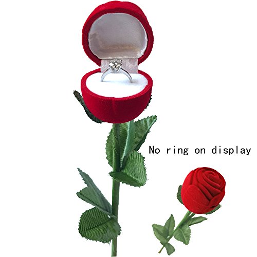 -. Feature : Fashional ,romantic , originality unique,Each rose has aMixed color plastic wrap and a ribbon that can be DIY if it is needed / Material: Flannelette ring box,handle is plastic / The inner measurement of the ring box is: approx.(1.55inchX1.95inch),Full Length:26cm/10.2' / The red rose ring box with faux leaves for decoration,see photo,It must be a wise choice to purchase it for LOVER! / A special way for you to display the ring for her! SUPRISE and ROMANTIC