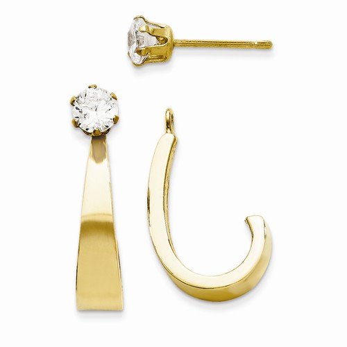14k Yellow Gold J Hoop with CZ Cubic Zirconia Stud Earring Jackets (21mm x 4mm)