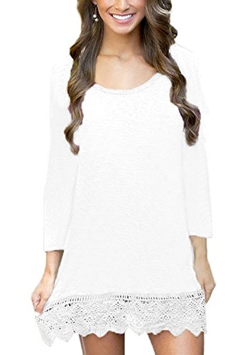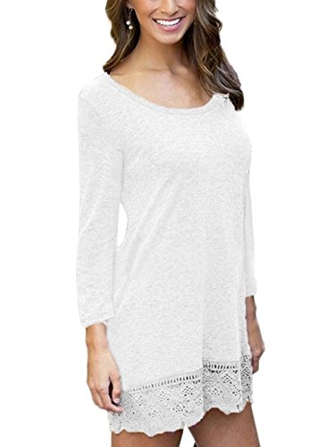 MiYang Women's Long Sleeve A-Line Lace Stitching Trim Casual Dress L White