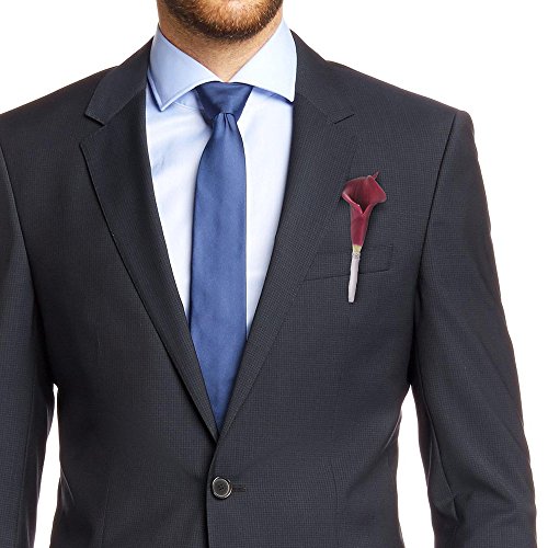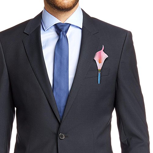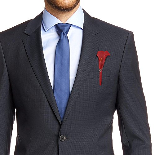 Beautiful boutonniere real touch calla lily with accents decorated with a shiny bead, attach alloy clip behind floral ribbon wrapped stem for easy to wear and take off
