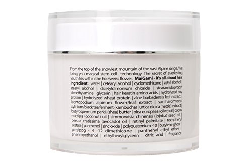 - WE ARE PLEASED TO INTRODUCE MAIGAMI, A luxurious all natural restorative hair care products that will repair dry and damaged hair. From the top of the snowiest mountains of the vast Alpine range, we bring you the most innovative stem cell technology. The wonders of the edelweiss flower combined with the magic of the kombucha mushroom deliver a unique formula designed to strengthen, replenish, and restore your hair giving you a fresh and rejuvenated look. It is sulfate free treatment!!