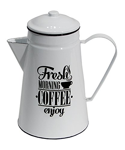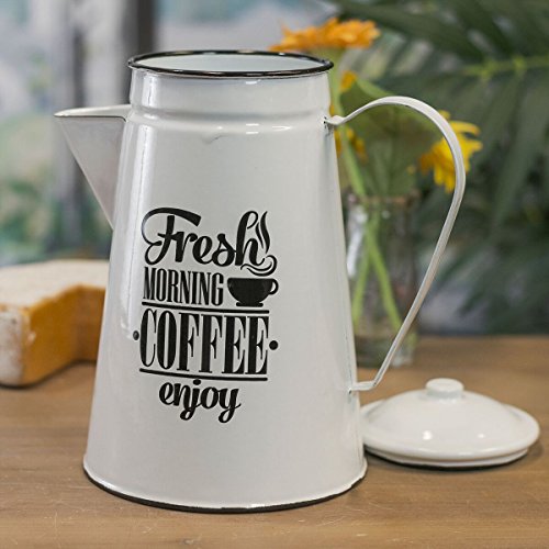 Black White Enamel 'Fresh Morning Coffee' Coffe Pot