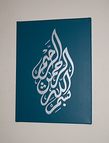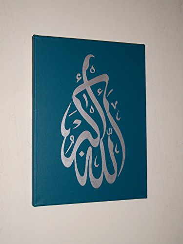 -. Feature : The Arabic calligraphy on the left hand painting reads " ALLAHU AKBAR" on the middle painting it reads "LA ILAHA ILLA-ALLAH" and on the right hand painting it reads "BISMILLAH IR-RAHMAN IR-RAHIM". / There are three separate canvases, each one measures 40cm (16 inches) high x 30cm (12 inches) wide x 1.7cm (0.6 inches) deep. / These paintings are hand painted in acrylic, by myself, a degree accredited graphic artist. I spend a long time on my paintings so they are very neat. / There are some staples or tacks on the sides of the frame, and the paint goes right down the edges so the canvas is ready to hang as it is. Although you can add a frame if you so wish. / I have added some staples on the back secured with screw hooks, so you can pop them straight onto the wall. Your paintings will be carefully packaged in bubble wrap and cardboard to ensure they reach you in perfect condition.