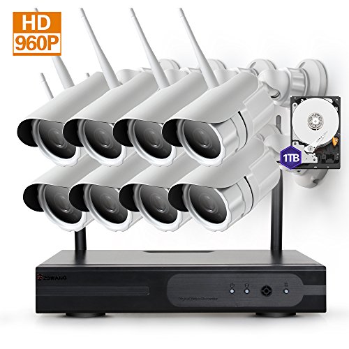 HD 960P Smart Remote Auto-Pair WiFi Wireless Security Camera System 8 Channel NVR Kits with 8 HD Outdoor Wifi IP Cameras (Built-in Router, 1.3MP Camera, 1TB HDD)