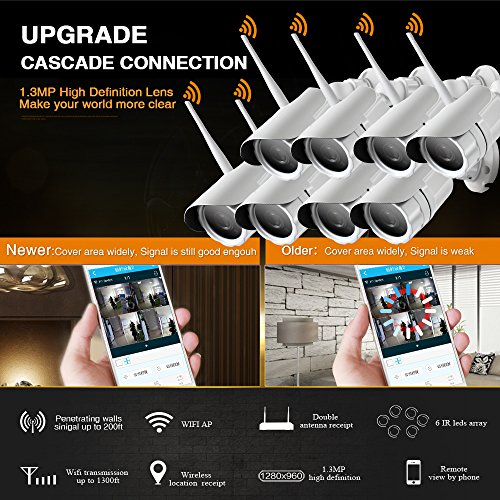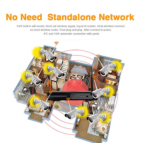 Premium HD 960P Video: 30% more clear than 720P. Get into the details with stunning High-def video. View Anywhere & Anytime: Free App for live View & Motion Alerts Via Internet, smart phone and tablet with WiFi or 2G/3G/4G.Built-in router and two WiFi antennas, this NVR ensures strong & stable WiFi connection for up to 1300ft in open area, up to 200ft with obstacles.