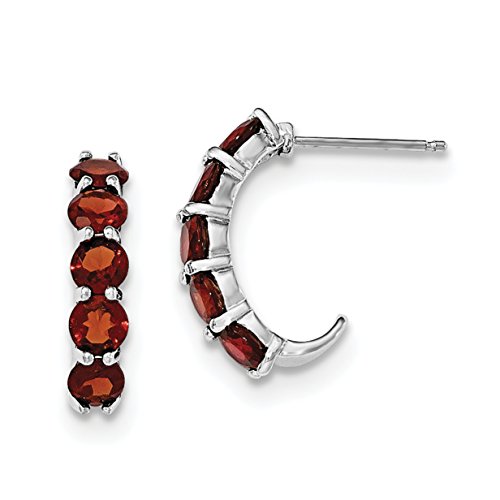 ICECARATS DESIGNER JEWELRY 925 STERLING SILVER RED GARNET J HOOP POST STUD EARRINGS EAR HOOPS SET FOR WOMEN