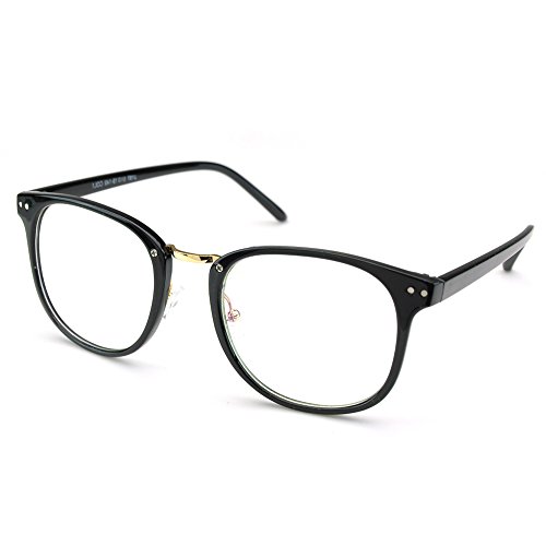 Vintage inspired glasses with a bold squared-off frame presenting a sophisticated retro look. Made with an acetate based frame, metal hinges and clear polycarbonate UV protected lenses.
