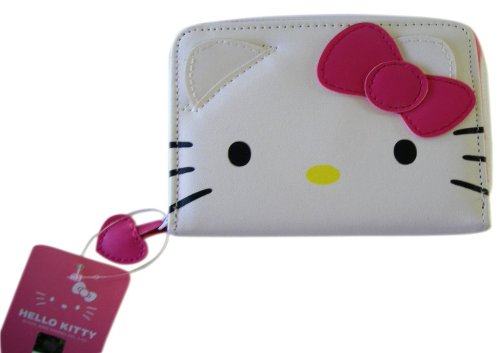 Hello Kitty Face Design Wallet with Pink Bow. Color : White with Pink Bow. Material : white leather. Dimension : 5" x 4". It's Sanrio Licence with hologram sticker authentication tag on it. It's perfect for gifts.